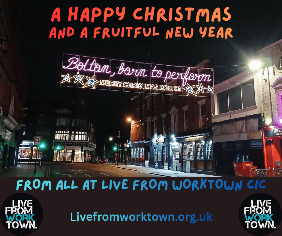 It’s been a busy year for everyone at Live from Worktown, which started with our Bolton Observed programme of events, all run as a part of Bolton’s tenancy as the Greater Manchester Town of Culture.  We ran call-outs for poetry and photography, plus a series of Side Door radio shows broadcast on Bolton FM. All this culminated in an extravaganza held in the Bolton Museum, featuring poetry readings, performances of music and song, an audiovisual soundscape and the launch of an illustrated commemorative anthology, comprising writing and photos submitted by Bolton residents. The Bolton Observed anthology of local writing and photography proved to be well received and also went on to be distributed freely across the town’s libraries and community centres.