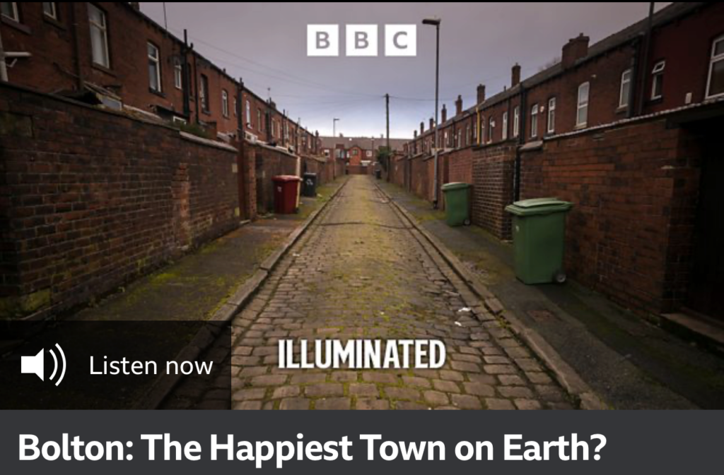 Broadcast on Radio 4 at 7:30pm on Sunday 1st February, you can also listen to the programme on catch up: Bolton: The Happiest Town on Earth?